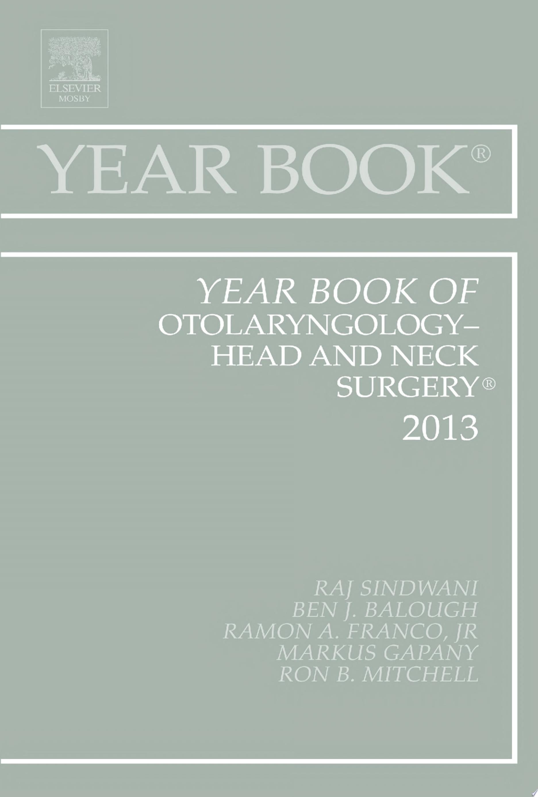 Year Book of Otolaryngology-Head and Neck Surgery 2013, 1, edited by Raj Sindwani, is a practical veterinary reference published by Elsevier. This volume provides a comprehensive overview of poultry intestinal health and recent advances in alternatives to drug treatment of significant disorders.
